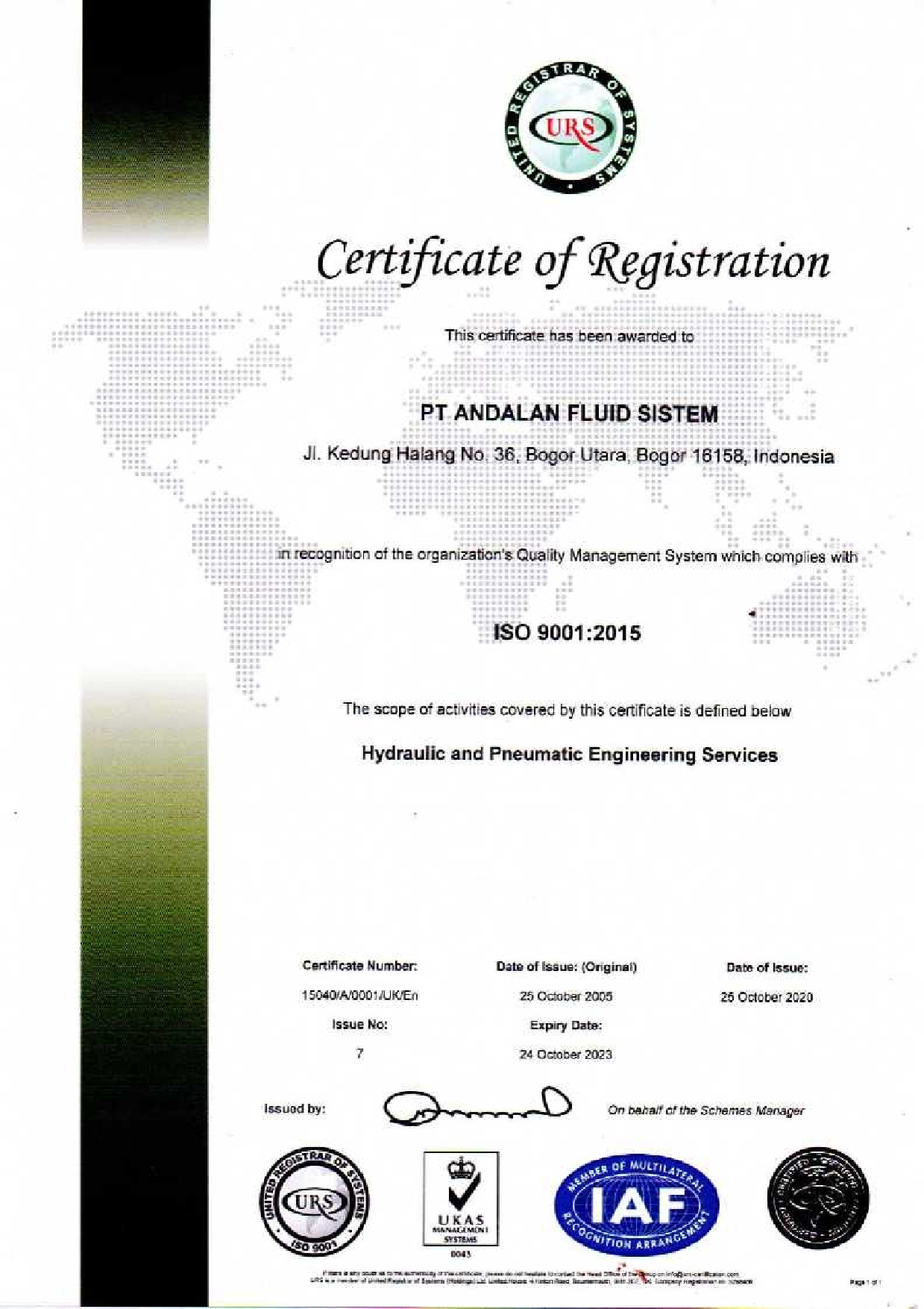 ANDALAN FLUID SISTEM GET ISO 9001: 2015